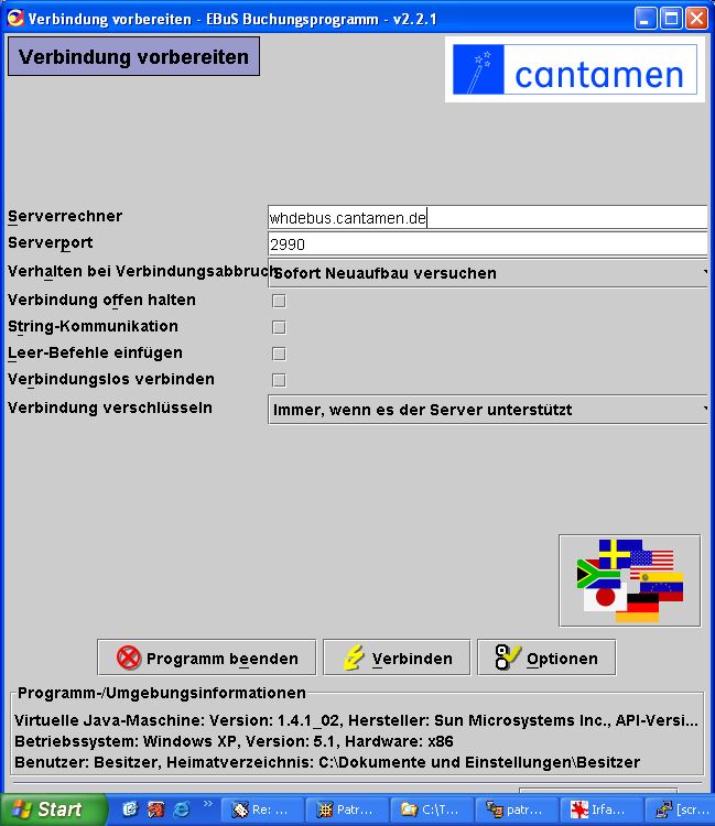 Nach telefonischer Rücksprache mit Cantamen wird es bald auch eine korrigierte Version (richtiger EBUS-Server eingestellt) zum downloaden geben